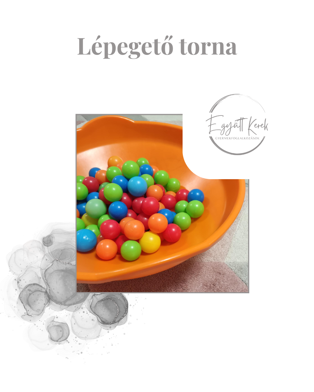 Játékos mozgásfoglalkozás, mely lehetőséget ad a meglévő mozgásos készségek gyakorlására és a következő nagy- és finommozgásos mérföldkő előkészítésére.