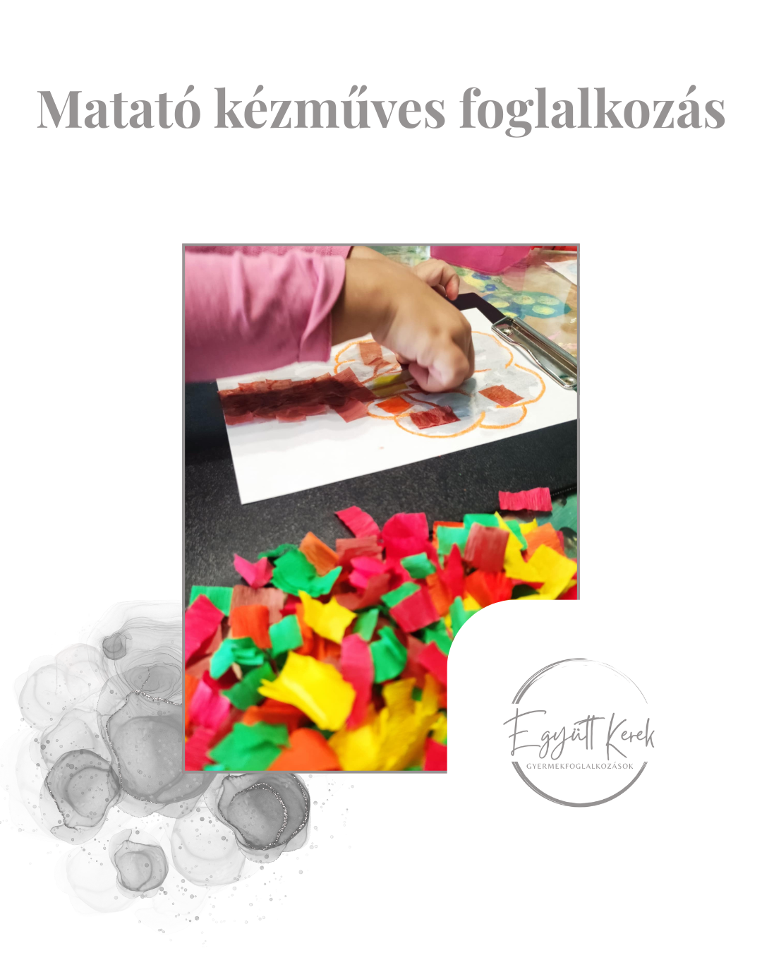 Finommozgásokat, a kéz aprólékos, összerendezett mozgásait támogató és fejlesztő, alkotó tevékenységek és játékok kipróbálására ad lehetőséget ez a foglalkozás.